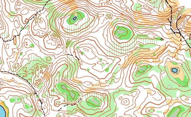 A very technically challenging area of fine negative contour detail, with an intricate mix of vegetation thrown in. One of the mappers (Ivar Helgesen of Norway) suggested that it was perhaps not an appropriate venue for a Canadian Championships — that it would better serve for a World Championships. Enough said.