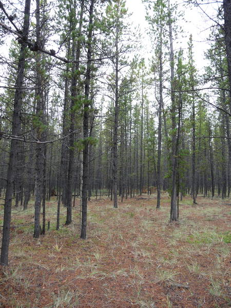 Croucher Creek is a mixed area combining areas with very detailed negative topography, areas with larger less complex depressions, and upland areas of positive topography. The forest comprises a mix of pine, aspen and spruce interspersed with natural meadows. There are some areas of deadfall throughout the map area.